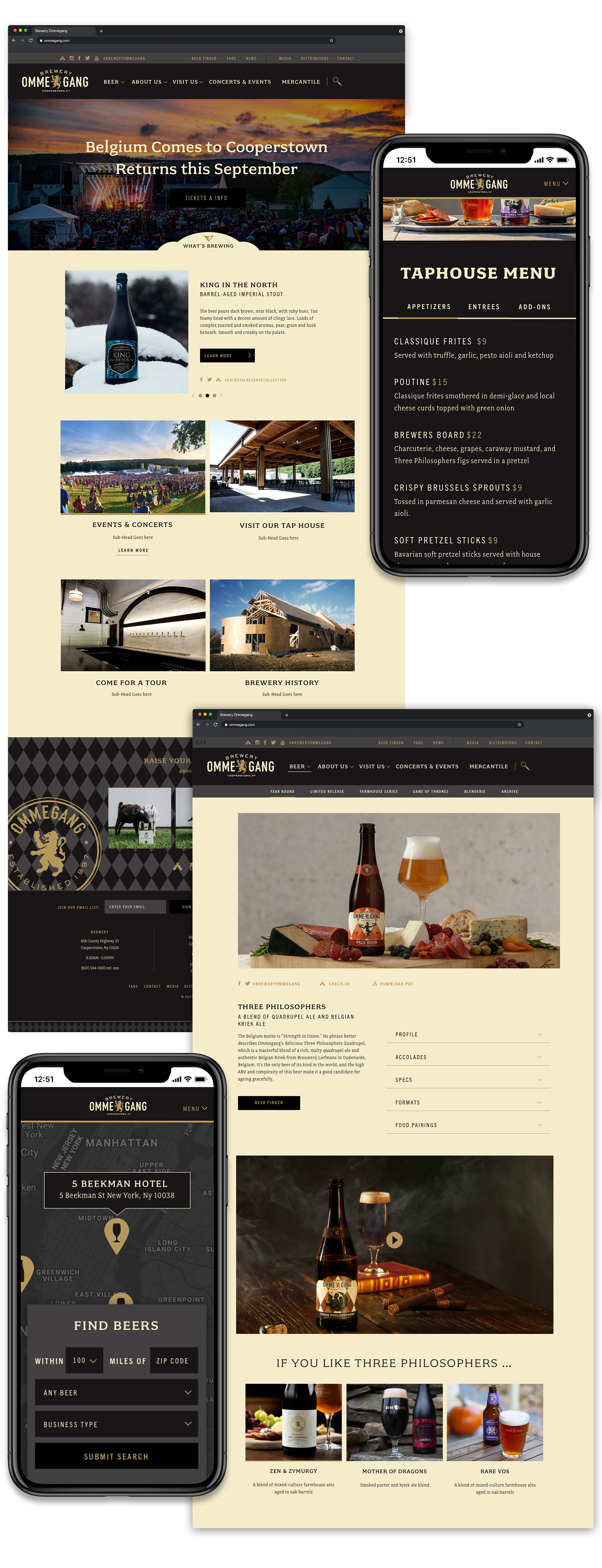 During my tenure as Senior Designer at Brewery Ommegang / Duvel Moortgat USA, my multifaceted role spanned across various creative disciplines. I undertook comprehensive responsibilities including packaging design, website development, event activations and photography. Notably, I art directed a promotional video campaign in and designed packaging for Ommegang’s Game of Thrones collaboration with HBO. I also played a pivotal role in branding Ommegang's live events such as the summer concert series and Belgium Comes to Cooperstown (BCTC), an enduring cultural touchstone in Upstate New York.